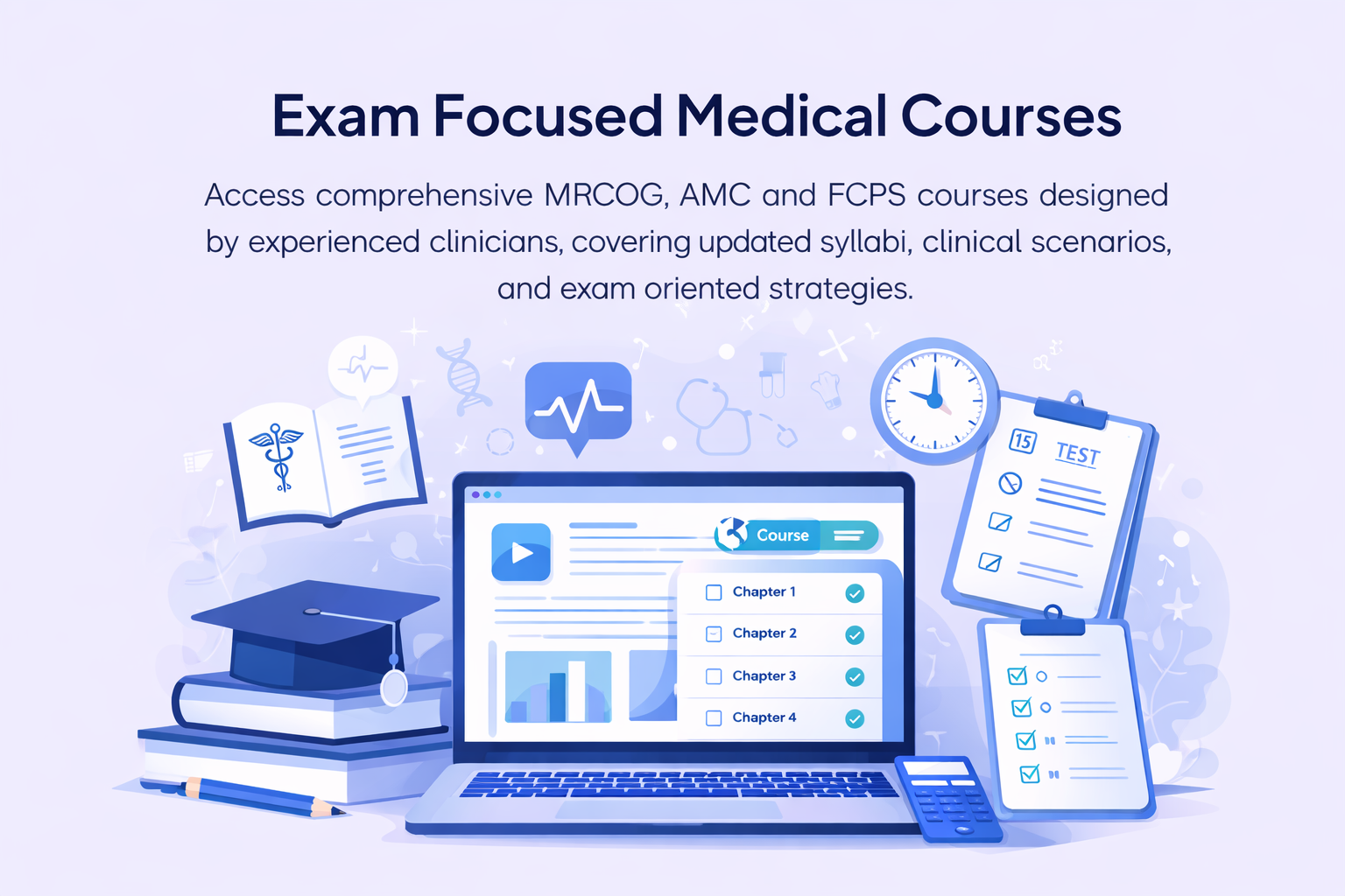 Expert MRCOG, AMC & FCPS courses, practice questions, study schedules.